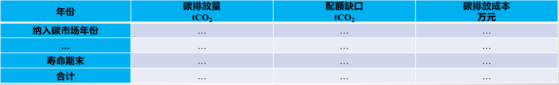 2)計算期內各年度碳排放配額盈虧情況 :見下表。